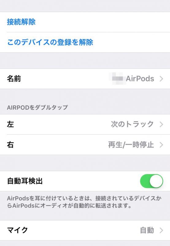 この設定画面で Air Podsの全ての設定ができるようになります。
