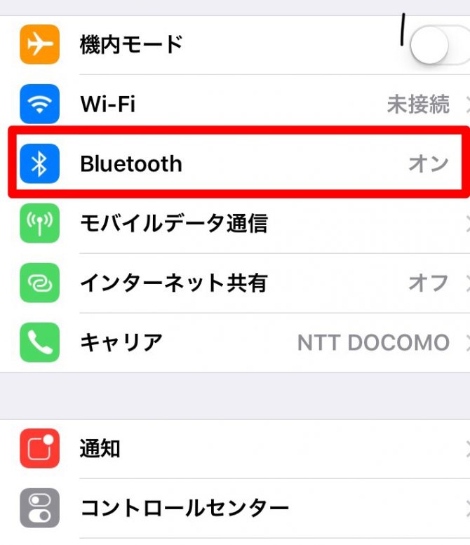 そしてAir Podsの接続方法である「Bluetooth」をタップします。