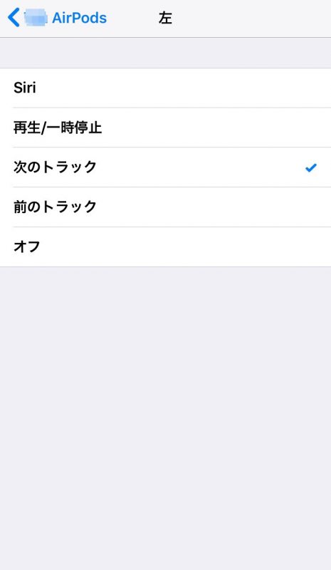 そして「名前」の下にある 「AIRPODをダブルタップ」という項目で,、左右イヤフォンへのダブルタップの機能を割り当てる事ができるようになります。