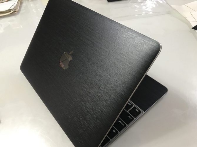 保護目的であれば ハードケースの選択肢もありますけど わたしは 薄いこのMacBookのコンセプトを壊したくないので しばらくこのスキンシールで シックな色味を楽しむ事にします(^-^)