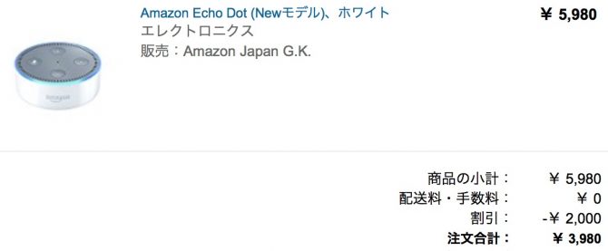 「Amazon Echo dot」を注文してみました。