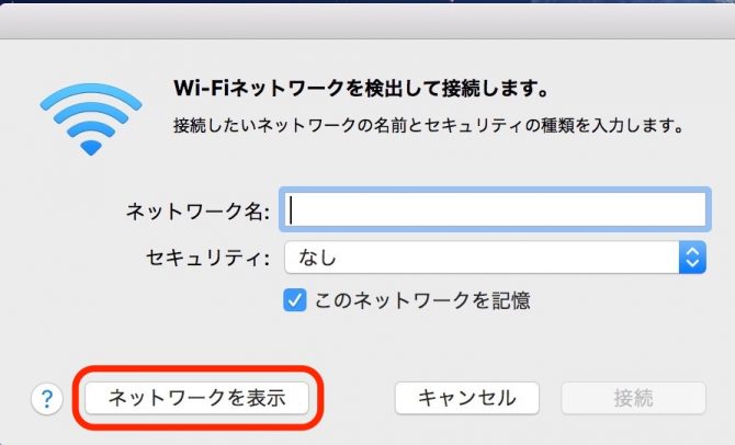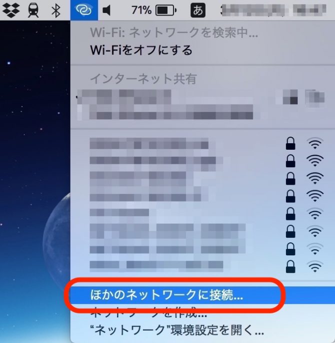 この一覧で iPhoneが表示されない時は「ほかのネットワークに接続」を選んで