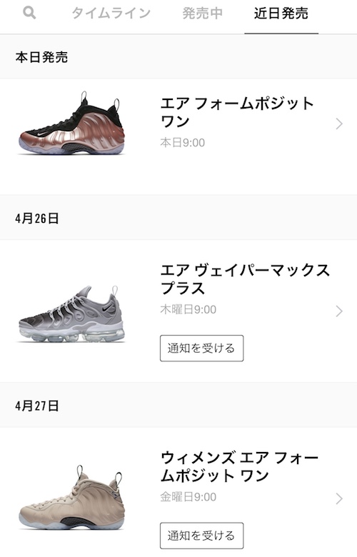 ナイキ 新作シューズの発売時刻が 一覧で表示される!