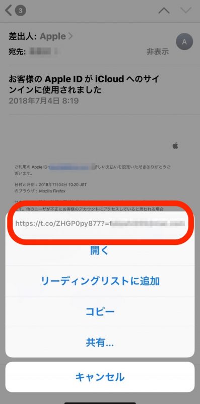 iPhoneだと 怪しいリンク先に 気付きにくい