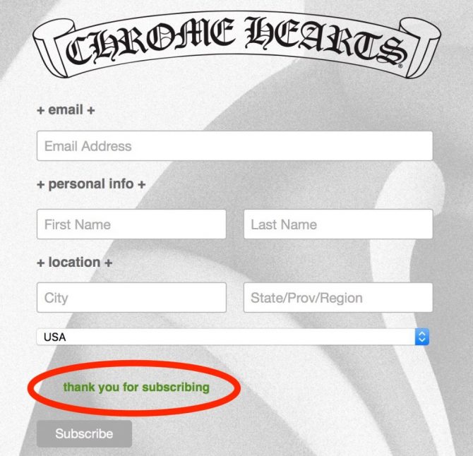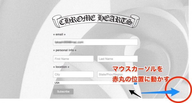 この入力フォームは、クロムハーツオフィシャルメールマガジンの申し込みページだったようです(歓喜)