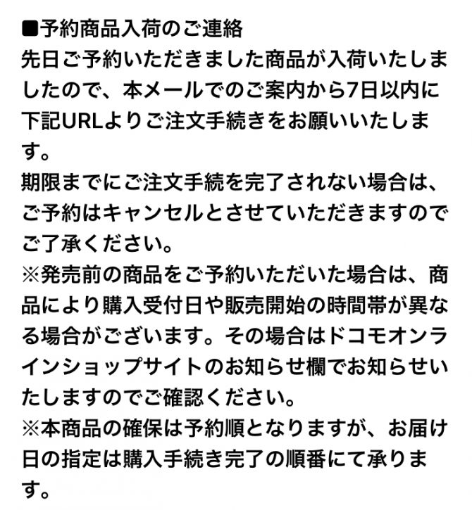 昨年、iPhone Xを ドコモオンラインショップで予約した時は 発売日前日 に 以下のようなメールが届いたのですが