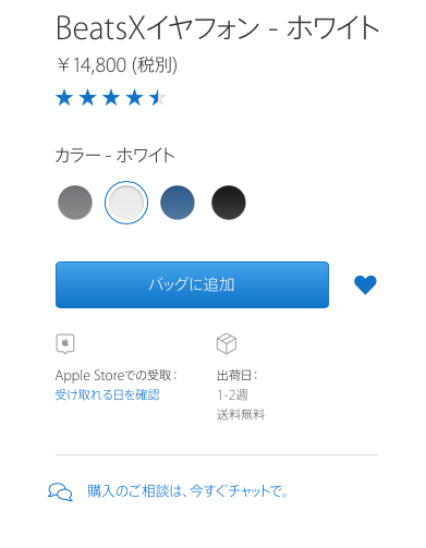 10日の午後5時から 注文を開始していた BeatsX のBluetoothイヤホンですが 本日(11日) Am9:00頃では Apple Online storeで 納期が 6週待ちと AirPods同様 品薄となっていましたが 先ほど 11日 Am11:00頃に Apple Online storeを再度 覗くと 出荷日が 1-2週と 早くも改善されていました。