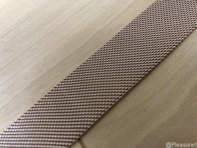 アップで撮ってみましたが 意外と均一というか かなり精巧に作られている ようにさえ思います。まぁ製造上での当たり外れもあるとは思いますが 届いたミラネーゼループバンドは スレ傷さえありませんでした(必要以上に疑ってましたw)