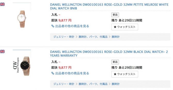 そして本来ブランド名(メーカー)の表記がなされる箇所には どういった訳か「腕時計」と記載されており 商品タイトルに至っては ダニエルウェリントンのブランド名すらない訳ですので警戒が必要です。
