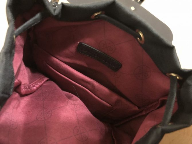 カバン内部はというと 内側に大きなメインポケット1つと2つの小さなポケットがあります。ハンカチ、ティッシュ等 すぐに取り出したいグッズを入れるには十分な大きさですね。