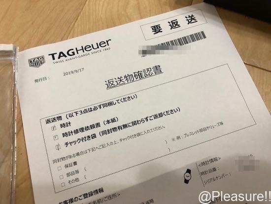 まずは最初に、同封されている「返送物確認書」に記載されている時計の品番とシリアルナンバーに間違いがないかを確認しましょう。こちらの用紙は 時計と同封して送り返す必要がありますので 不安であれば コピーか写真を撮っておくといいかもしれません。