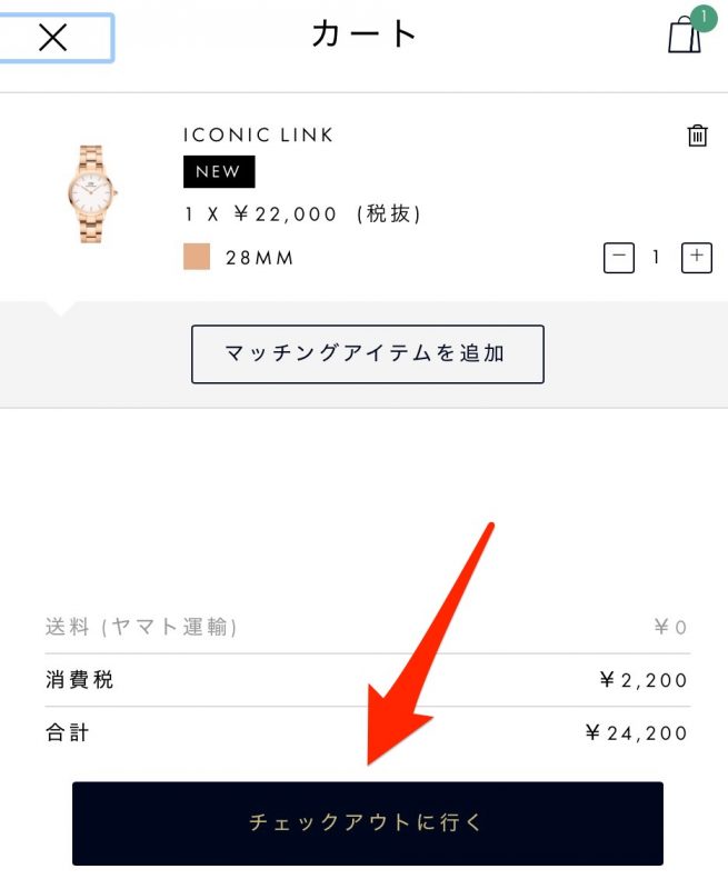 まずは、購入するアイテムを選んで「チェックアウトに行く」ボタンを押します。