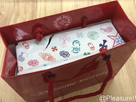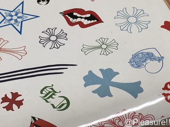 パッケージ外箱には 所狭しとカラフルなクロス、CH、フローラルやスカルなどクロムハーツのモチーフが 上蓋、サイドにプリントされています。