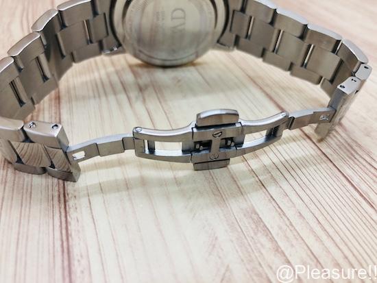 バタフライ形式のメタルバンドは 中央のボタンを押すことにより開閉します。