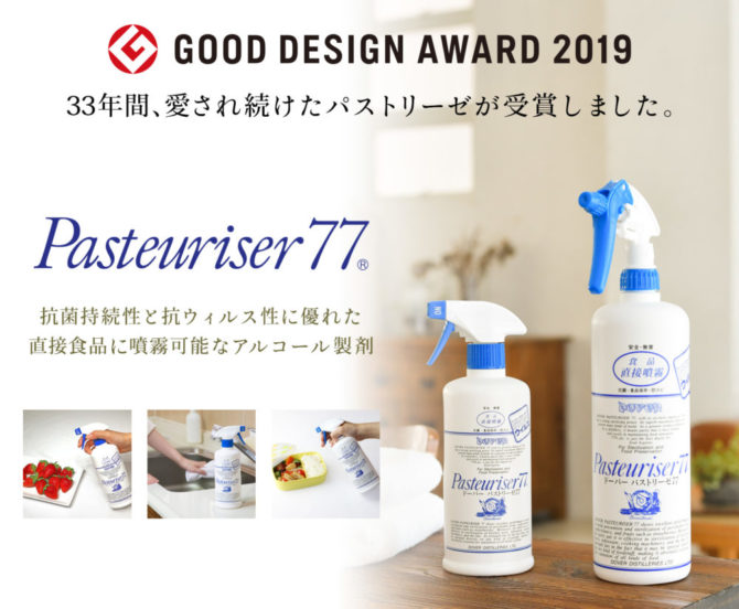 ドーバー パストリーゼが 人気となっているのは 食品のプロ向けに開発したアルコール除菌剤である理由だけでなく、発売当初から変わらないデザインが高く評価され 2019年には グッドデザイン賞を受賞しました。