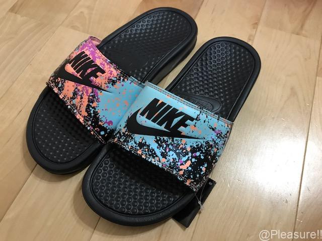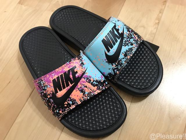 前回の ナイキのサンダル ベナッシ JDI 2017年モデルに続き ミスマッチタイプの 2017年新モデル JUST DO IT プリント