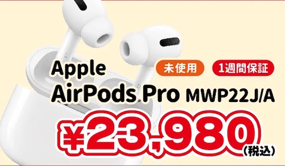また2週目の対象商品だった AirPods Proの未使用品 23,980円(税込)や iPad Air(第4世代)64GB 62,980円(税込)も、引き続きセール特価で販売を継続しているようです。