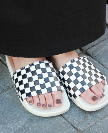 一目でVANSと判る、VANSのアイコン チェッカーフラッグがアッパーに配されたサンダル。