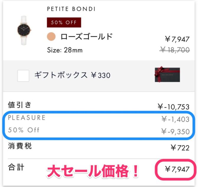 同じく今年発売となったばかりの新作腕時計「PETITE UNITONE」も 50%OFF対象のアイテム。