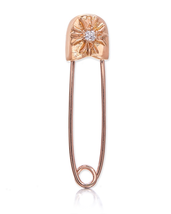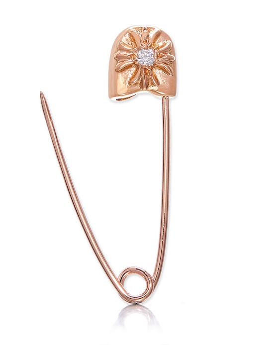 ピンのフレームに 22K GOLDを採用し、PAVE DIAMONDをこれでもかと装飾したクロムハーツの安全ピン。