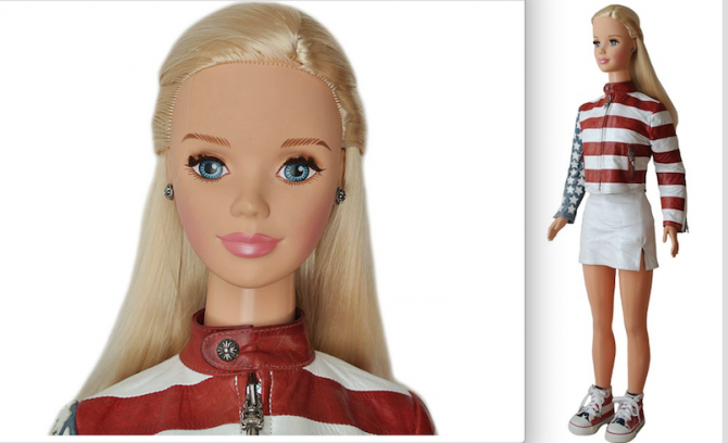 12体のバービーには、それぞれ名前がありアメリカ国旗のジャケットを着ている上の写真のバービーの名は 「サラ」